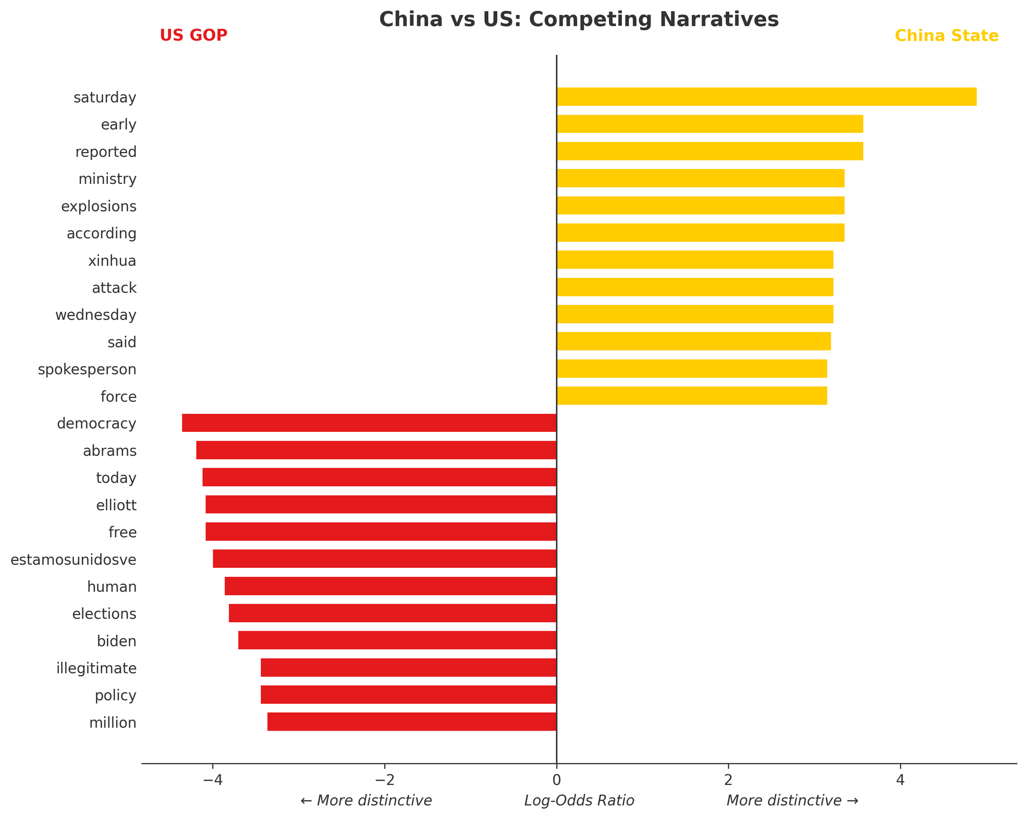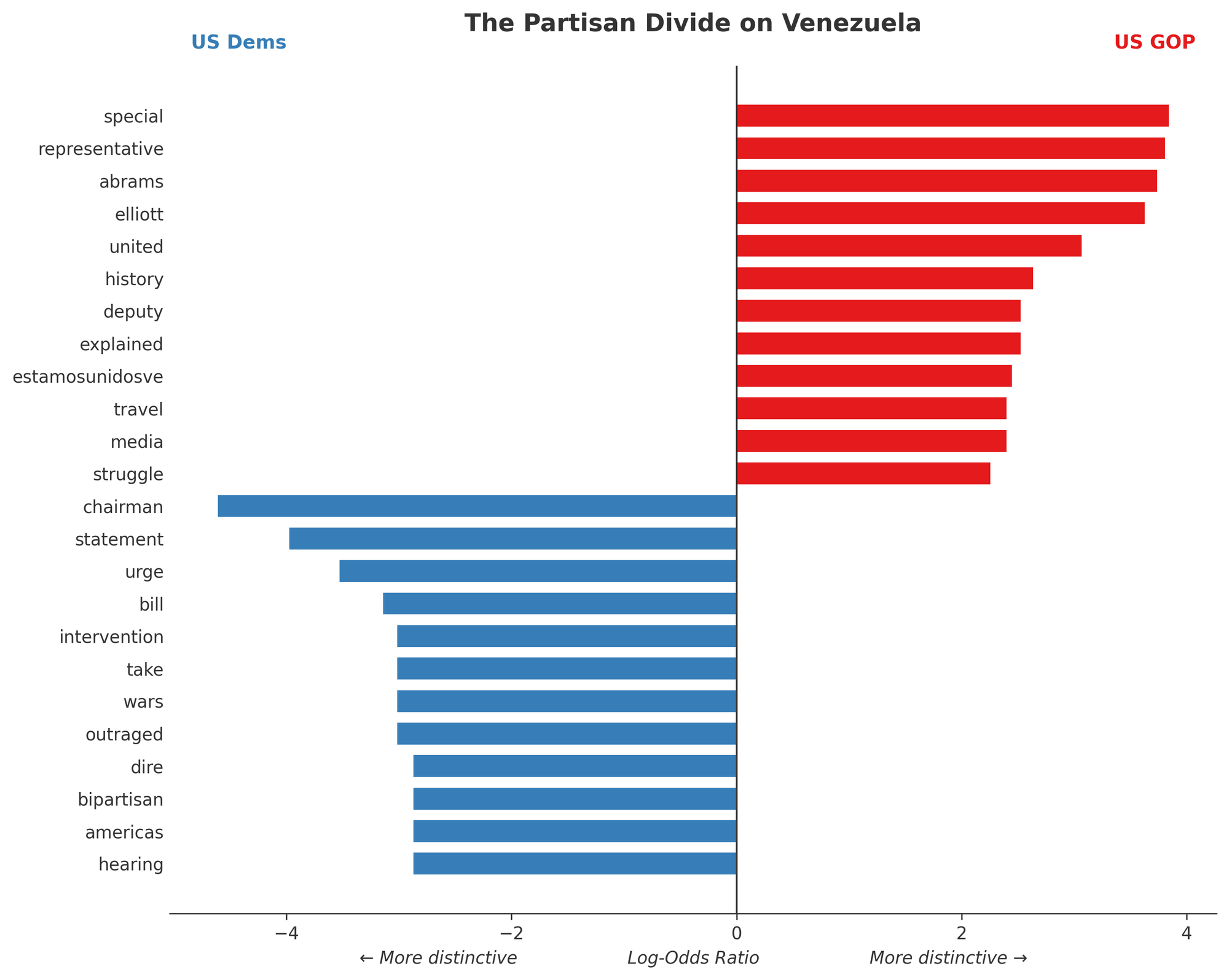 The sharpest and most revealing divergence is found within our own borders. As illustrated in the chart above, the vocabulary of the US GOP—aligned with the Trump administration’s "Absolute Resolve"—is strikingly teleological. Terms like "united," "history," "regime," and "illegitimate" dominate their discourse. This is the language of high stakes and moral clarity; it identifies a specific antagonist (the "regime") and situates the operation within a grander historical narrative of liberation.